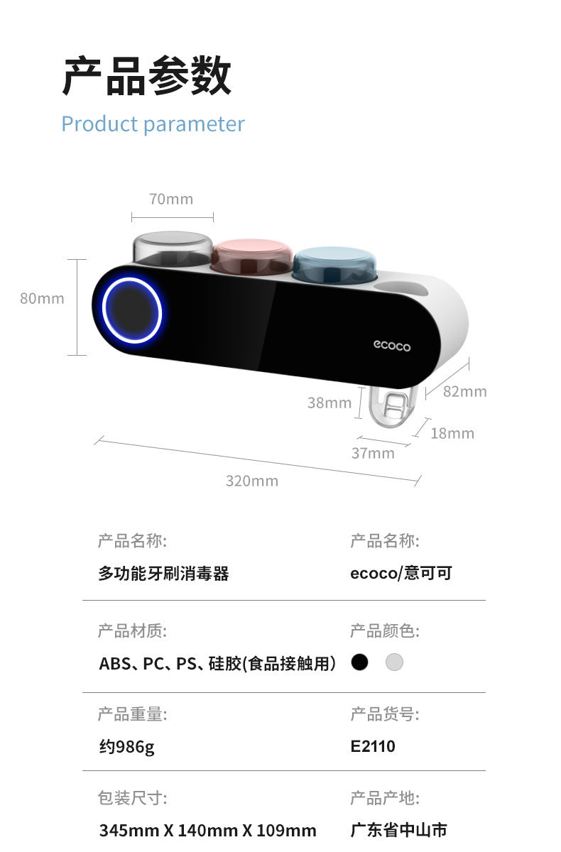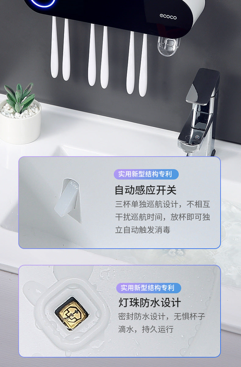 Nuevo Soporte de Cepillos de Dientes Eléctrico ECOCO con Esterilizador UV