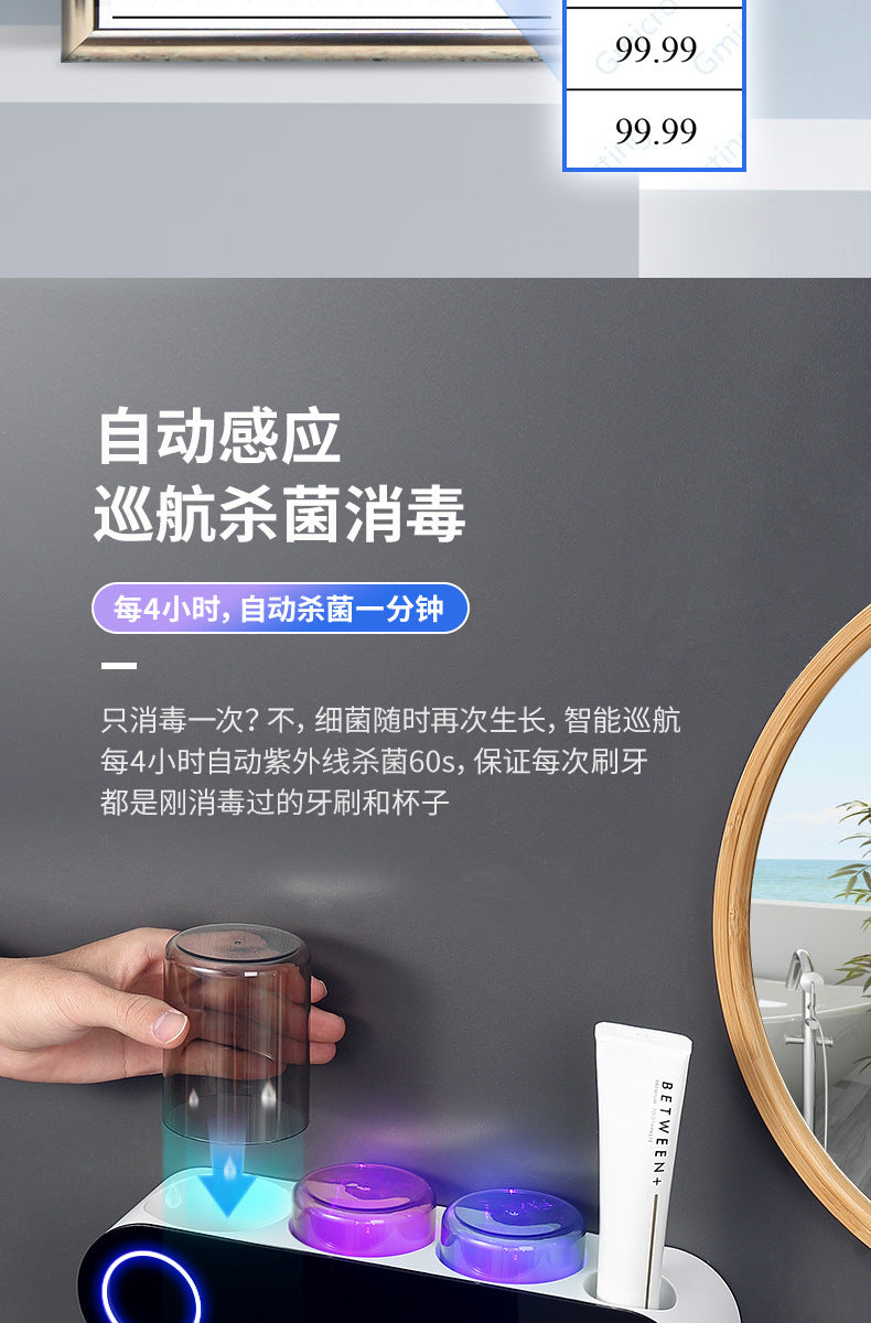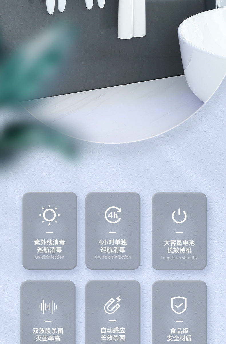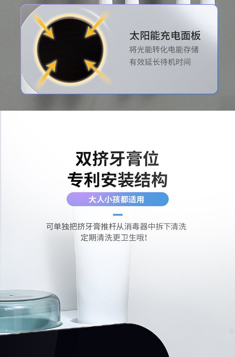 Mantén tu baño ordenado e higiénico con este moderno soporte de pared. Incluye esterilizador UV para eliminar bacterias de los cepillos, dispensador automático de pasta dental y carga solar o por USB. Un accesorio todo en uno, ideal para ahorrar espacio y cuidar la salud bucal de toda la familia.