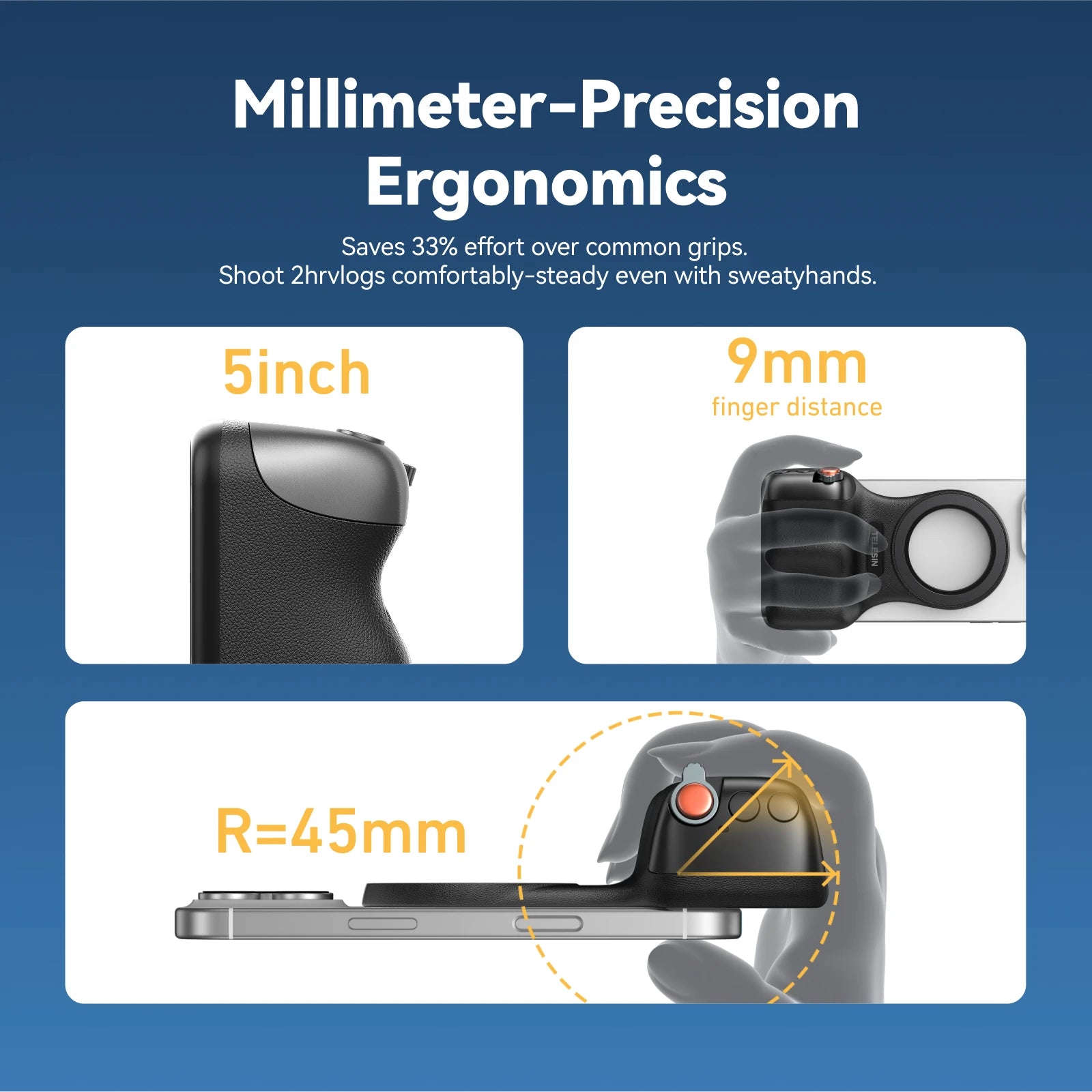 ✔ Agarre ergonómico para mayor estabilidad en fotos y videos