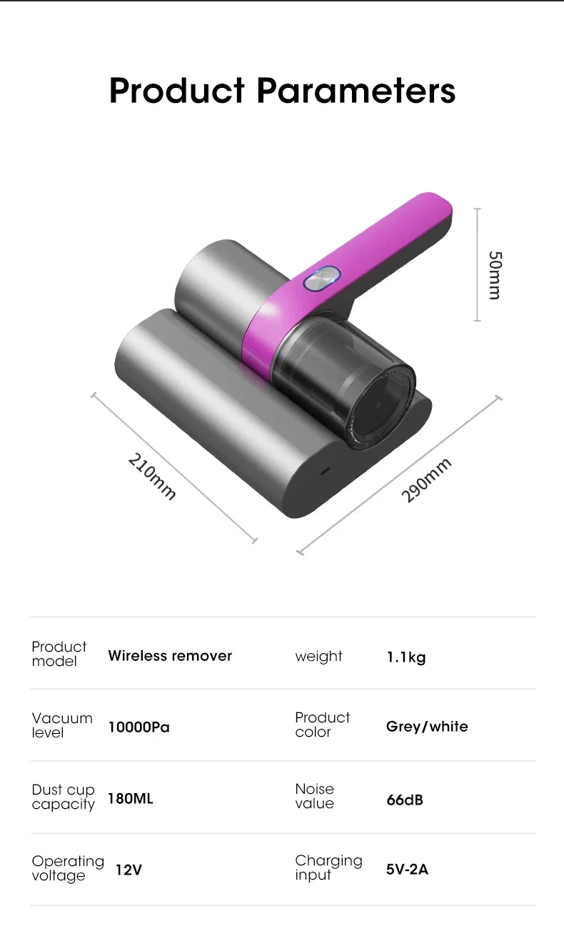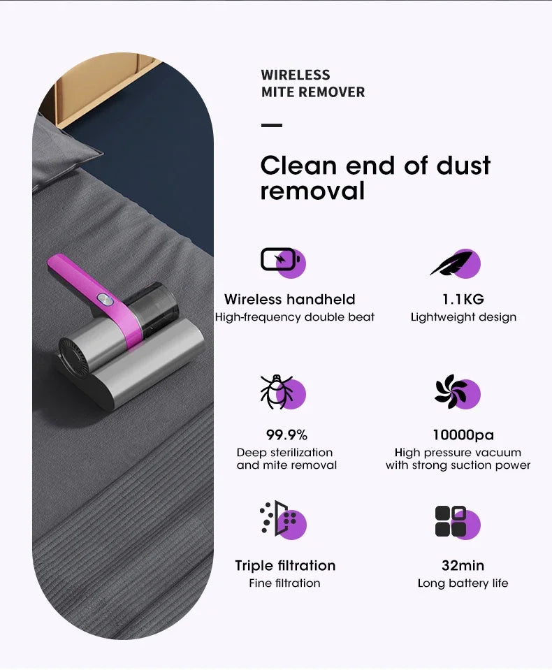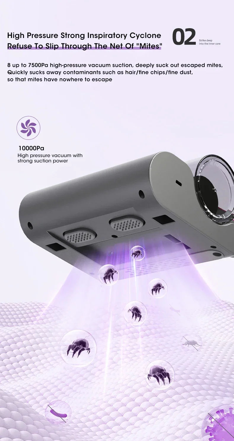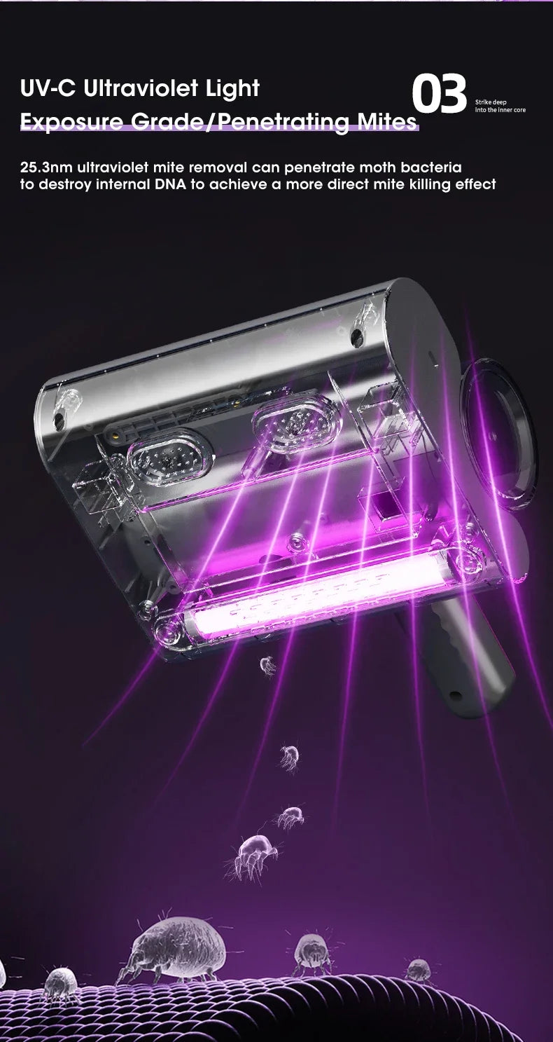 Aspiradora Inalámbrica para Ácaros – Esterilizador UV y Limpieza Profunda