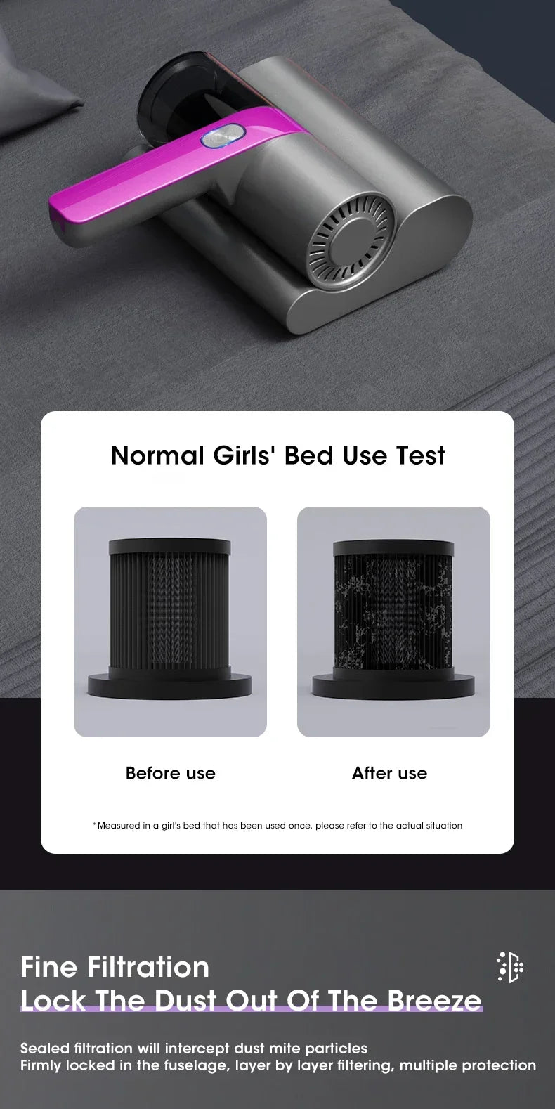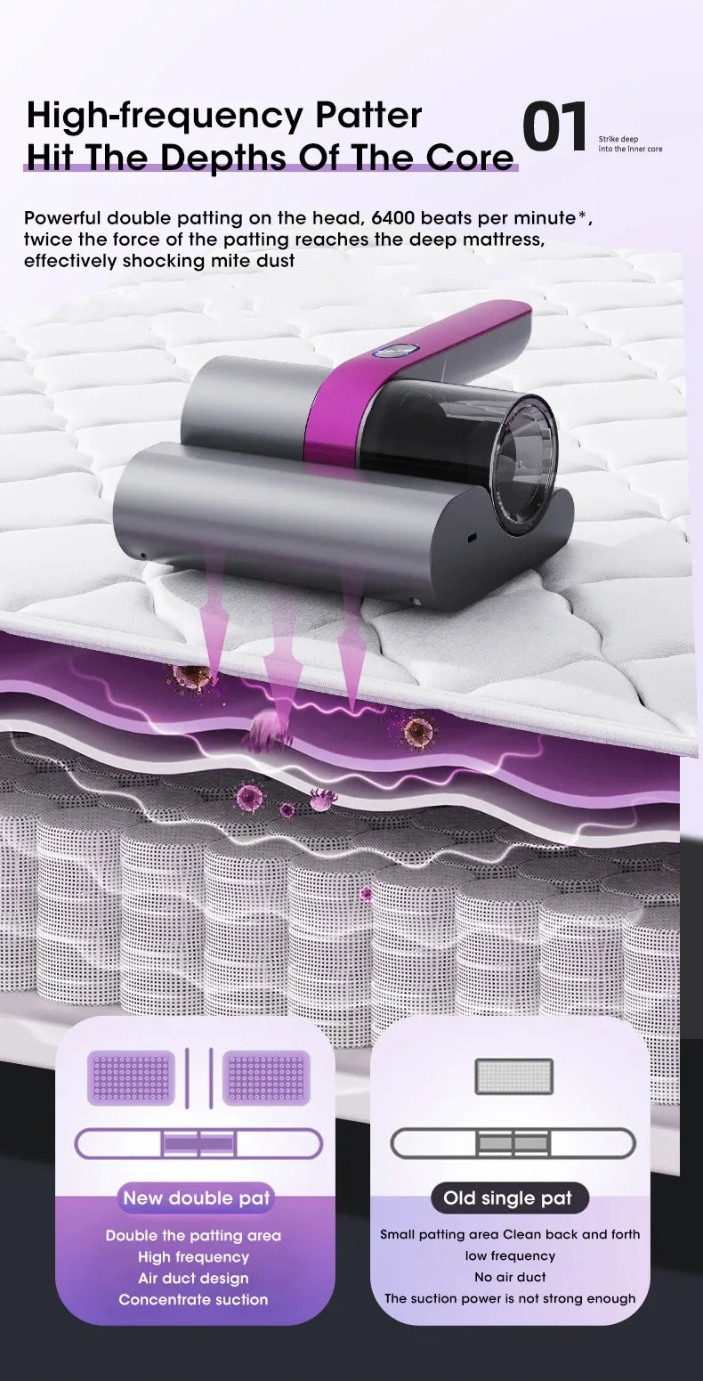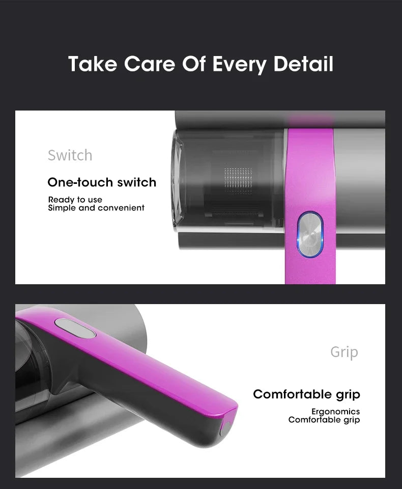Aspiradora Inalámbrica para Ácaros – Esterilizador UV y Limpieza Profunda