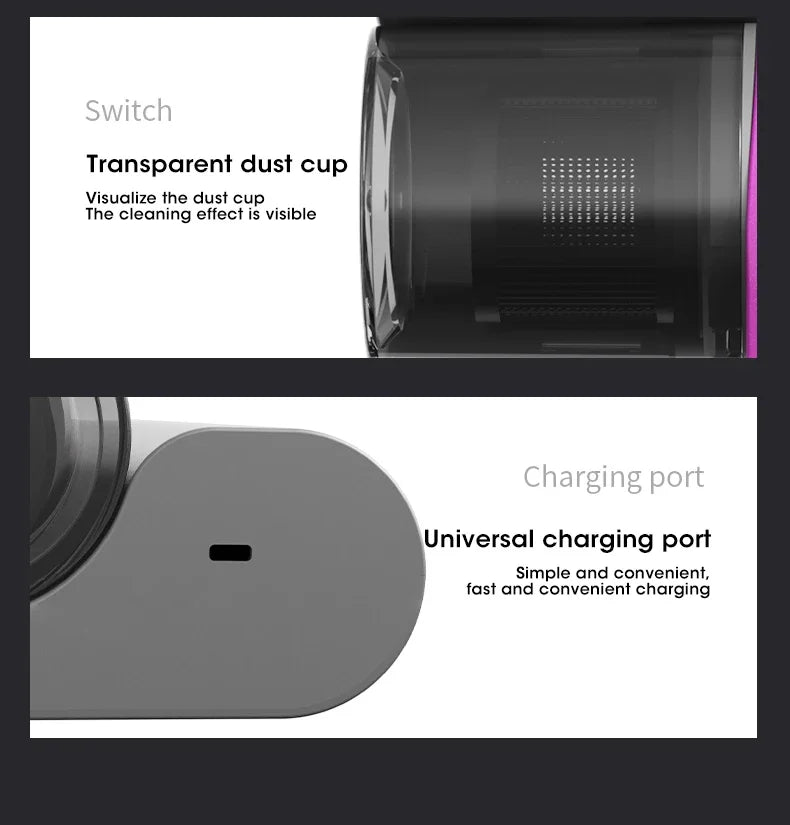 Elimina ácaros, bacterias y alérgenos de manera fácil y rápida con esta aspiradora inalámbrica equipada con luz UV para desinfección. Ideal para limpiar colchones, sofás, alfombras y telas, dejando tus espacios más saludables y libres de polvo.